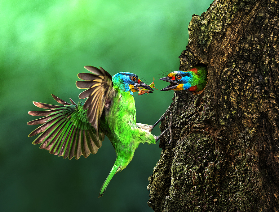 Bee eaters with grasshoppers